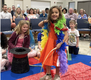 Each week, we start and end worship together. During worship, offer a children’s sermon followed by an invitation to “Children’s Chapel” – which is held in another space that engages kiddos in age-appropriate ways.