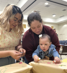 In addition, we also have a spacious kid-friendly area with chairs and books near the entrance. Upstairs, there is a “comfort room” for any who would prefer it, which has space for parents to engage in worship while children crawl, play, and even sleep. We also have a staffed nursery for children ages 0-3 starting at 9am through the end of worship every week.